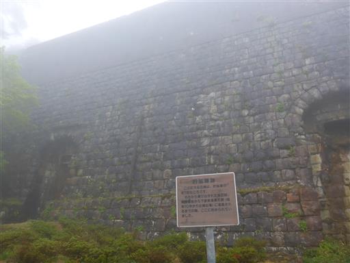 東平貯鉱庫跡。巨大な壁で、運び込まれた鉱石はこの中に貯められていた。