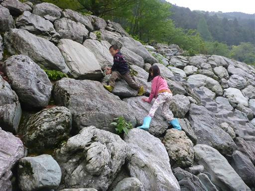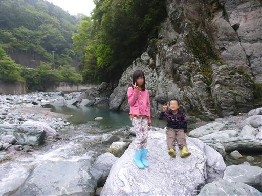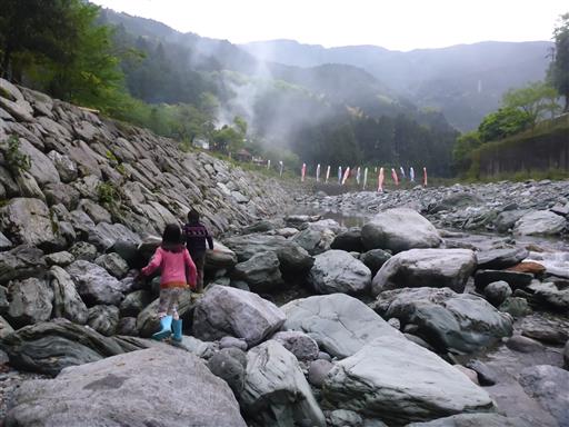 水量が多く子供達だけで遊ぶのは危険なため、少し川に触れたら引き上げる。