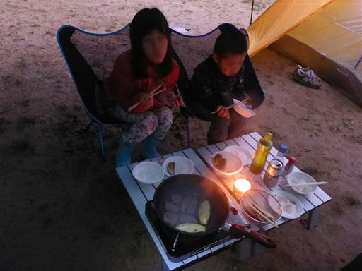 このキャンプ場は小学校跡に作られており、テントを張っているのは運動場だった場所。