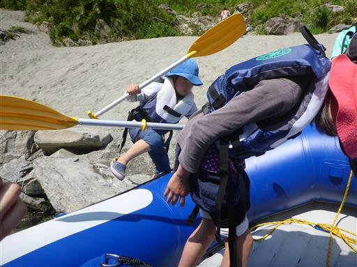 ラフトに乗船。客6人とインストラクター1人の計7人で出発。