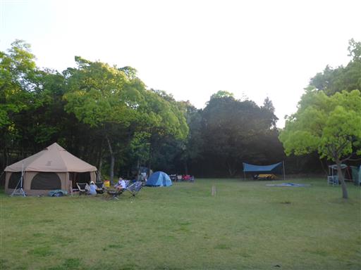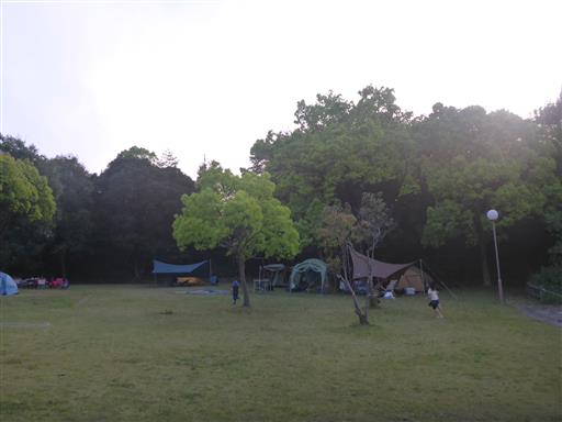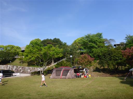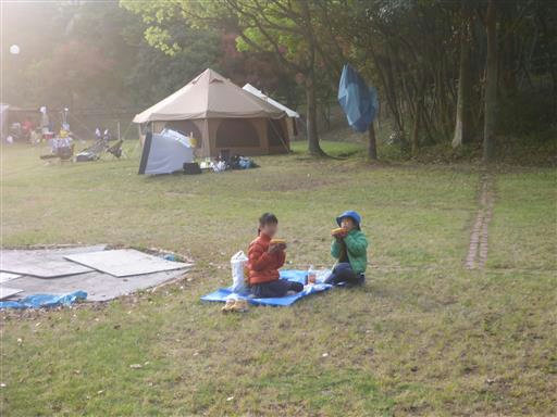 テント設営の間、ここで遊ぶように促したのだが、息子は一人で迷子になるのが嫌で、