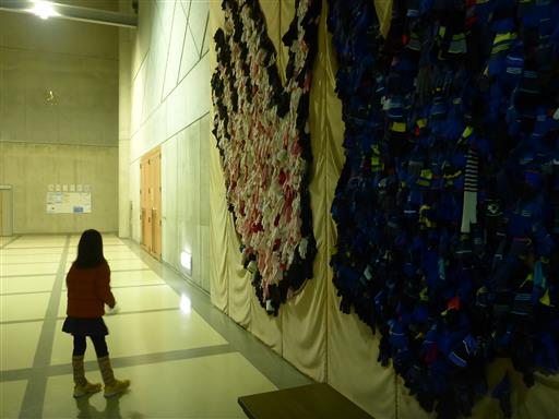 館内にはてぶくろで造った巨大なてぶくろが展示されている。
