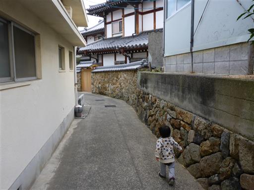 料理が出て来るまでの待ち時間、娘がグズったので店の周りをうろつく。