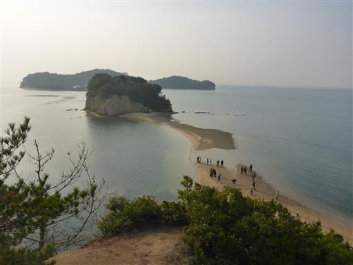 ここからだと砂州の道が良く見える。