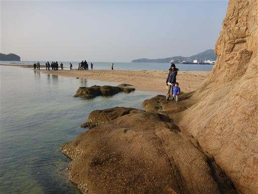 磯遊びをしながら砂州が繋がるのを待っていたが、なかなか繋がらない。