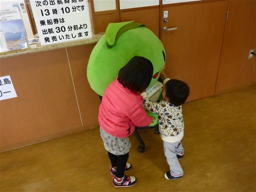 子供たちはオリーブしまちゃんの人形と遊んでいる。