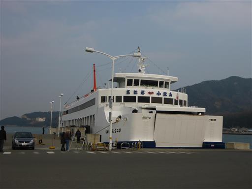 フェリーが港に到着。車に戻って乗船する。