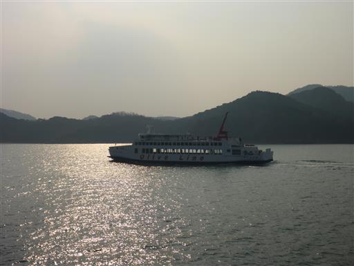 甲板からは山が良く見える。小豆島は全体が山がちな地形だ。