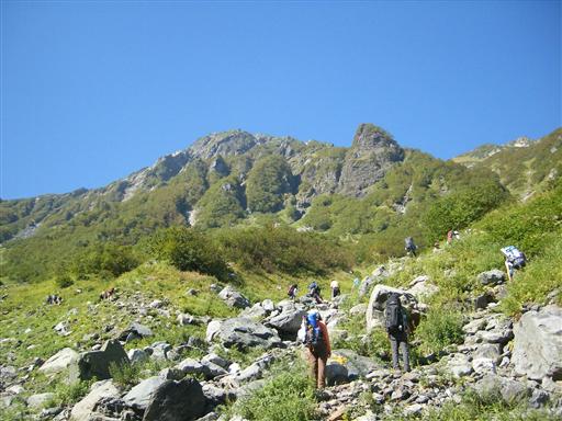 「ビレイ解除」などの掛け声が登山道まで響いてくる。