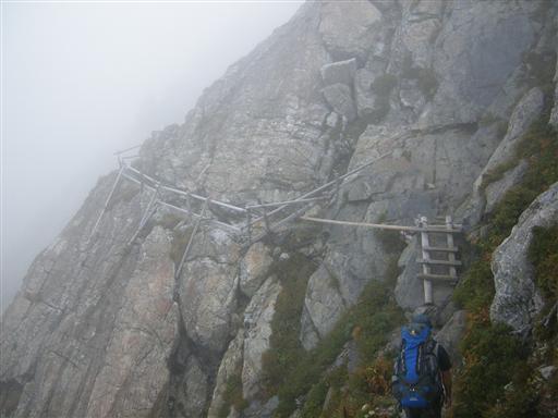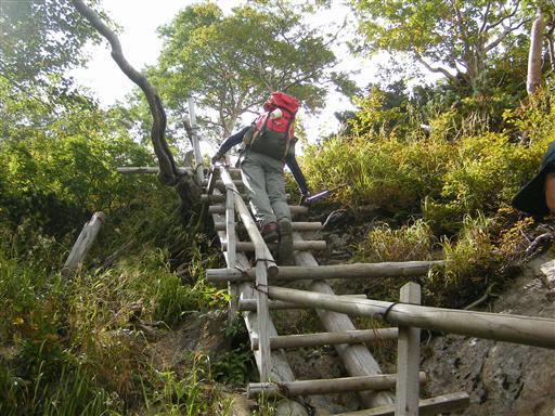 木段や、木でできた梯子が限りなく続く、なんともいやらしい登山道。