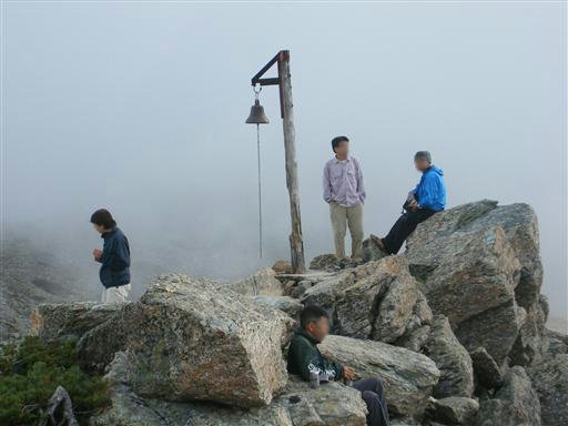 山頂からの眺め。雲に覆われて、遠望はほとんどない。
