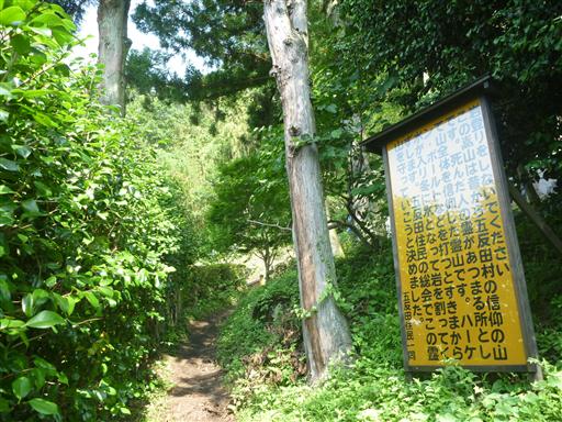 登山道入口に到着。信仰の山のため岩登りは行わないようにとの注意書きがある。