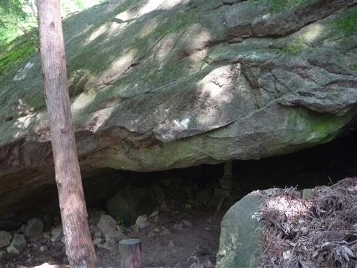 胎内くぐり。かなり細長い穴で細身の人でないと通り抜けるのは不可能そうだ。