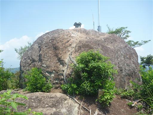 長い岩場を超えると最後に丸い岩が現れる。ここを登ると山頂だ。