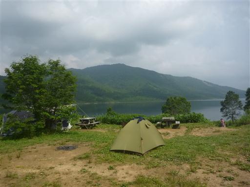 キャンプ場の前には野反湖の美しい湖面が広がっている。