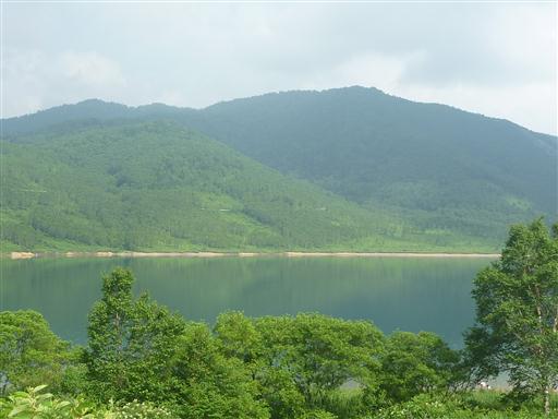 湖の畔に下りてみる。ダム湖とは思えないゆったりとした景色だ。