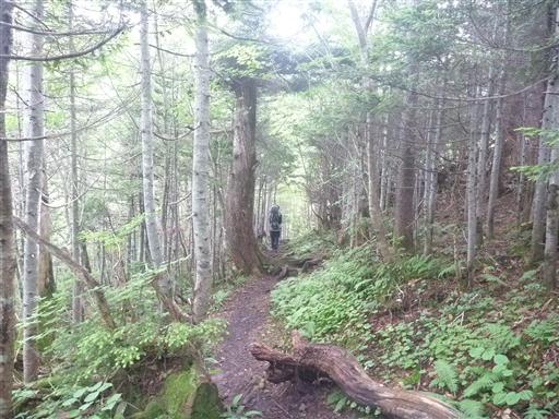 登り始めの標高が高いため展望が良い道が続くのかと思っていたが、案外樹林帯の中の道が長い。