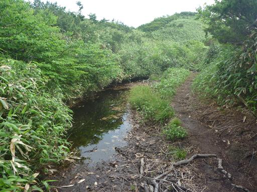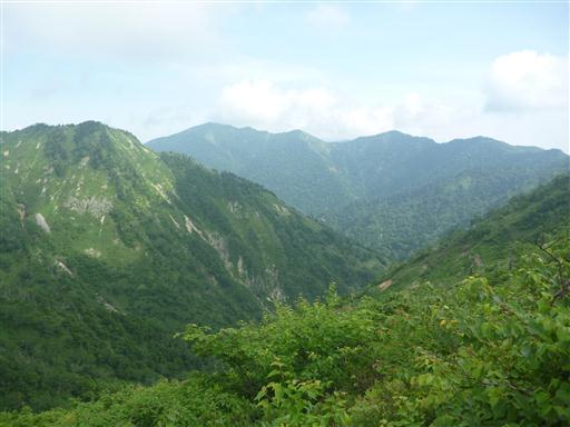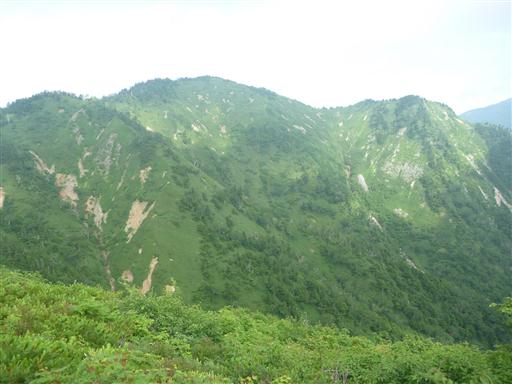 ハイマツや笹で覆われた斜面が緑色に輝き非常に美しい。