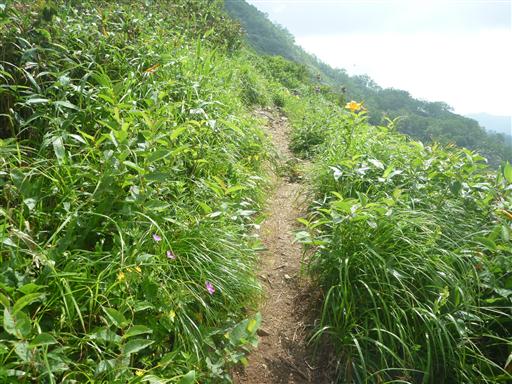 ここから先は登山道がないが、山頂からわずかな踏み跡が続いている。