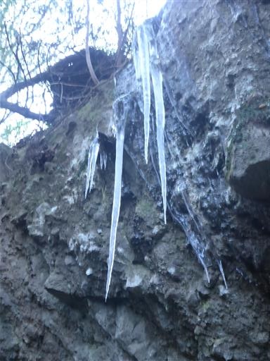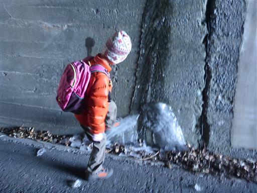 トンネルの中は少し寒く、滴り落ちた水が凍りついている。