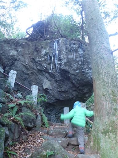 頭上には岩から滴り落ちた水が見事なつららを造っている。