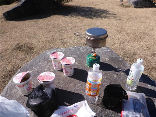 本日は時間に余裕があるので山頂でカップラーメンを作る。