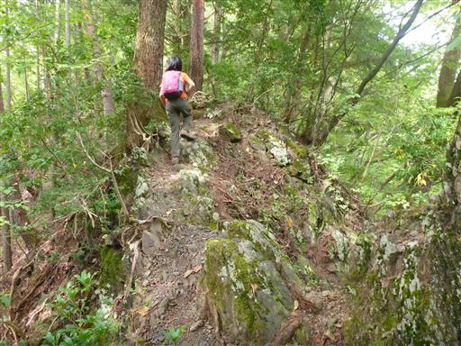 一箇所、痩せ尾根になって岩がちな地形になる。