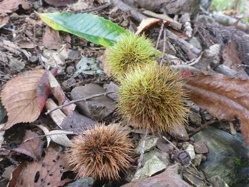 林道で栗拾いをしている人に出会い、非常に美味しいと教えてもらう。