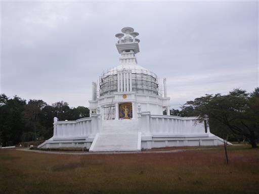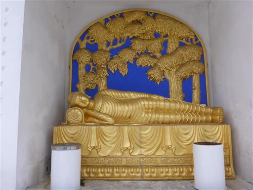 寝釈迦仏。仏舎利塔の4面に仏像が祀られている。