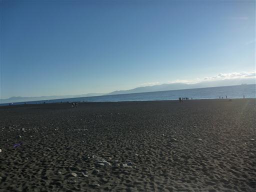 海岸に出てみる。目の前に広がるのは真っ青な駿河湾だ。