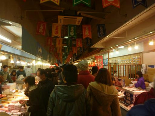 魚市場や飲食店が並んでいて、ものすごい人出だ。