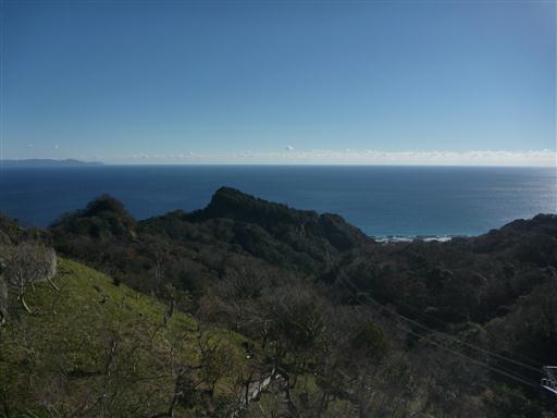 目の前に広がるのは真っ青な駿河湾、手前に見える山は久能山だ。