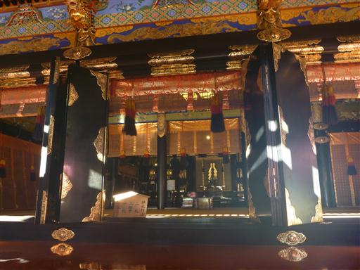 拝殿の内部。日光東照宮と同様、絢爛豪華な装飾が施されている。