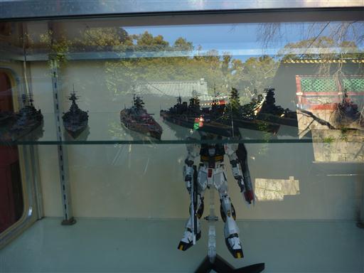 バンダイのプラモデルが奉納されている。