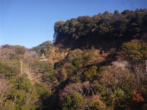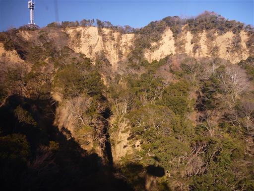 左手に久能山が見えてくる。周りを崖に囲まれている。