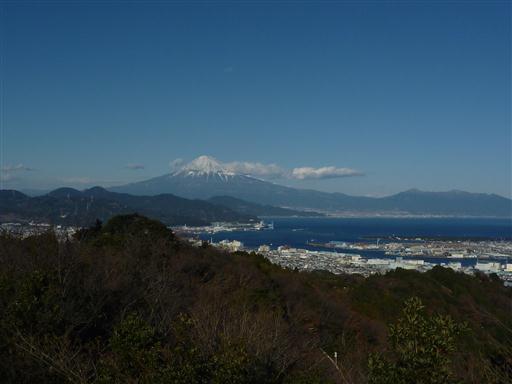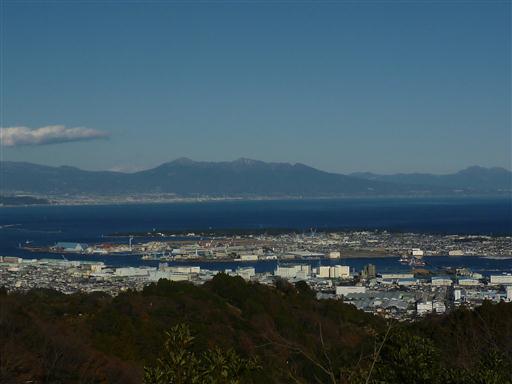 眼下には清水港と三保半島が見える。