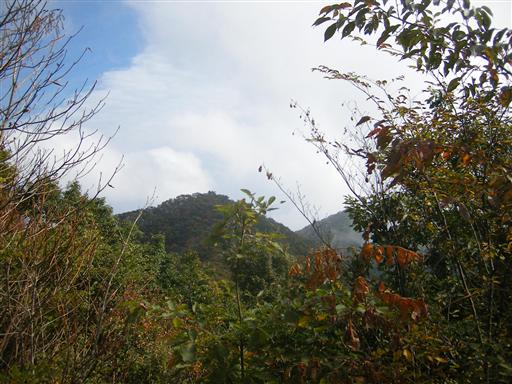 山腹からは茂みの向こうに微かに富士山が見えた。