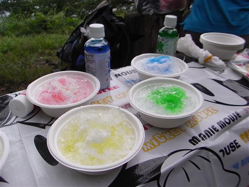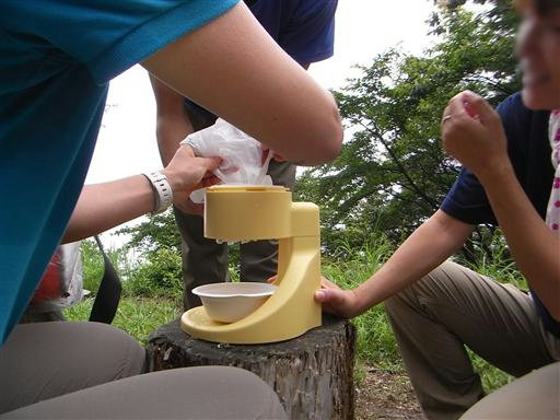 暑い中登ってきた山頂で、友人が作ったのはかき氷。