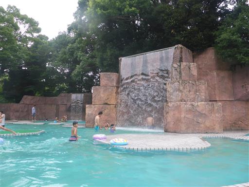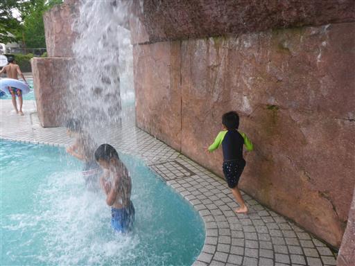 滝のあるプール。ここも子供向けで水深は浅い。