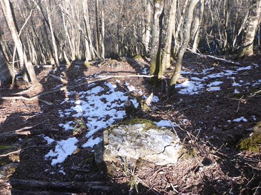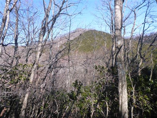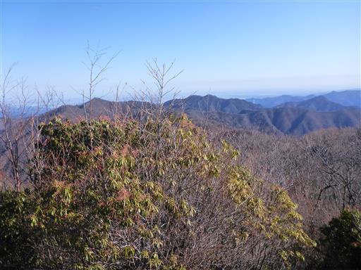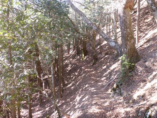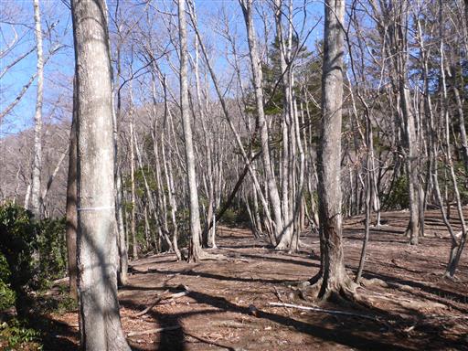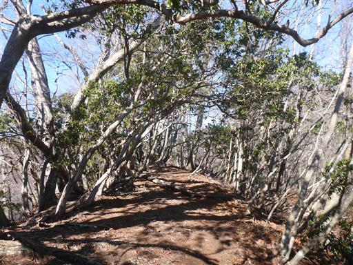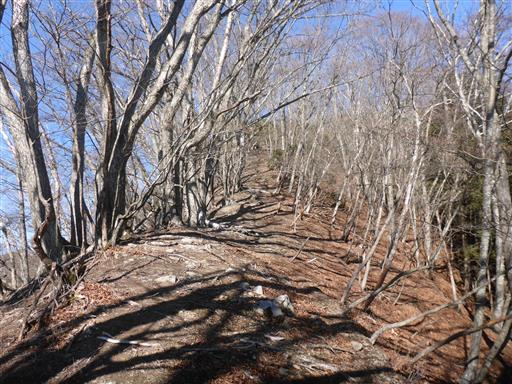 蕎麦粒山と天目山を結ぶ尾根は、ほとんどが尾根の南側を巻いている。