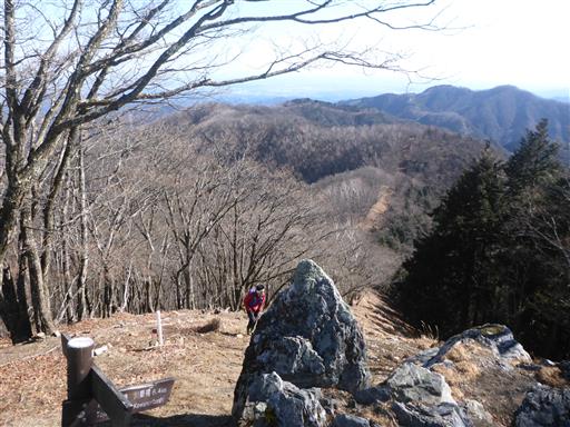歩いてきた方向を望む。左のピークが蕎麦粒山だ。