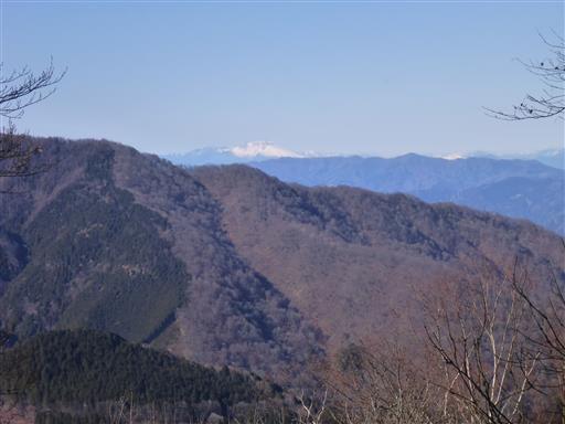 この辺りは松の木が多い。背後に奥多摩の山々が見えている。