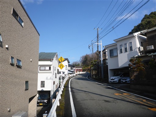 最初は車道を歩いていく。狭い道だが通る車が多い。