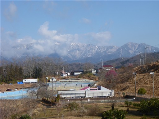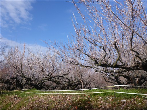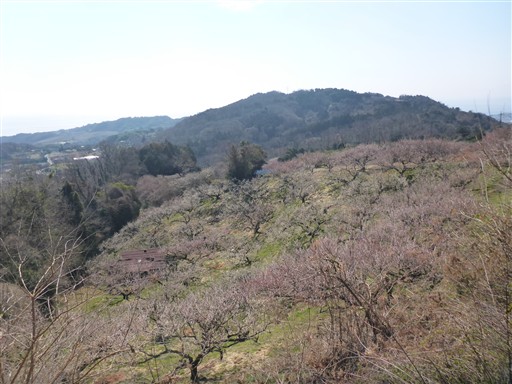 眼下に梅の木が見える。もう少し梅が咲いていれば素晴らしい風景だっただろう。