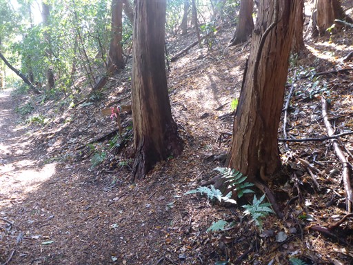 山頂らしき場所に来たが、特に何も見当たらない。私有地っぽい感じがするので、さっさと立ち去る。