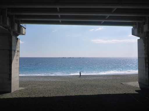 そして、その砂浜の上に作られているのが西湘バイパス。すごい所に道を作ったものだ。