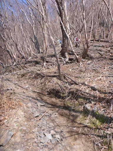 ここから登山開始。いきなりの急斜面の登りが続く。
