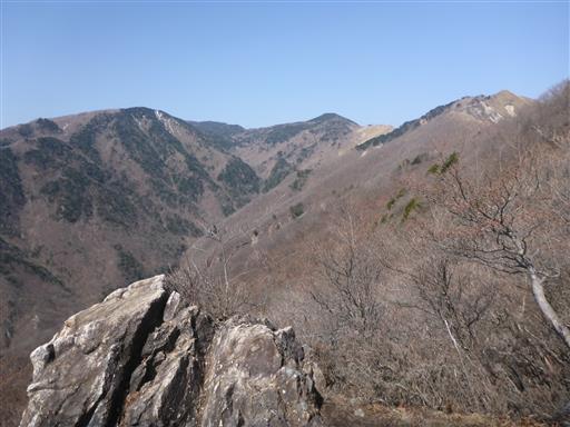 皇海山から南に延びる足尾山塊の主稜線、袈裟丸山の辺り。