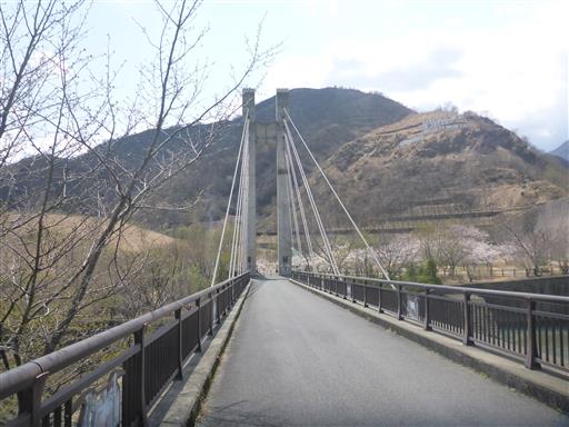 駐車場に戻ったら松木川に架かる吊り橋を渡って銅親水公園に寄り道する。