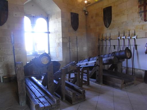 槍、剣、ボーガン、大砲など中世の武器が多数展示されている。